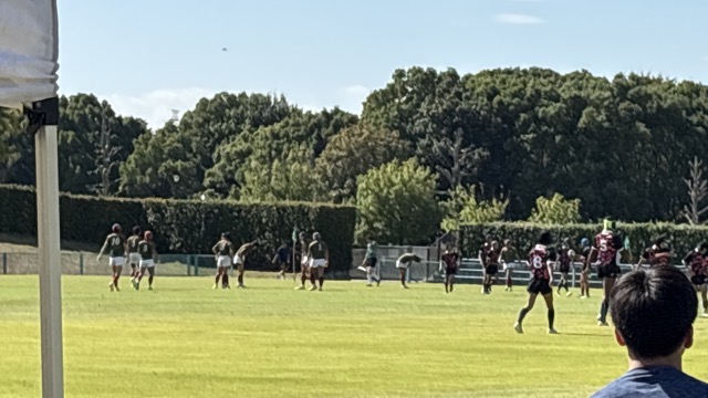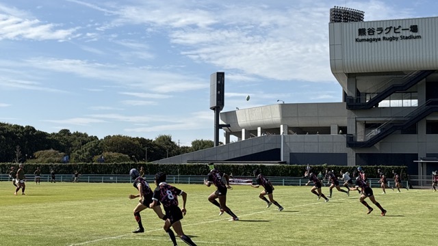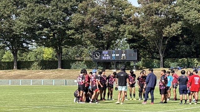 東日本予選準決勝① 2025年10月18日 最終更新日時 : 2025年10月20日 kumagaya_edit この試合に勝利すれば11月の東日本大会に出場決定です。前半終了、21-7でリードしています。点差ほど簡単な試合ではありません。藤井くんがトライを決めました。