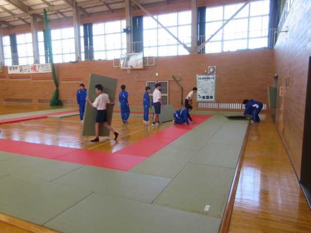 柔道1時間目は、会場づくりから始まります。