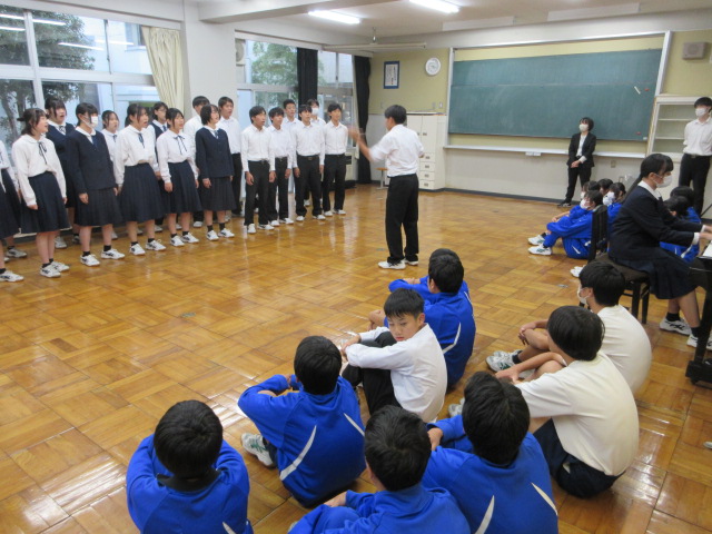 歌い合い(2・3年) 2025年10月24日 最終更新日時 : 2025年10月24日 kumagaya_edit 秋桜コンサートまで1週間を切りました。異学年による歌いあいが始まりました。ここからは体調、特にのどの調子に十分注意してください。
