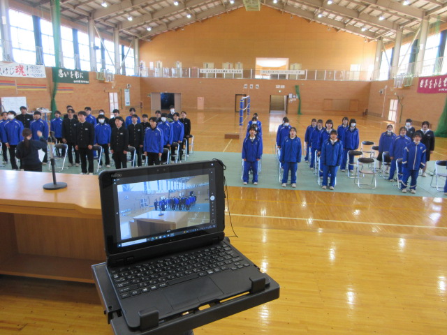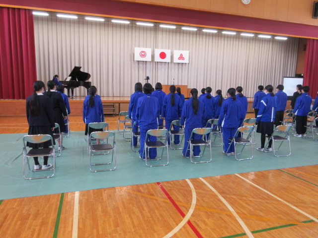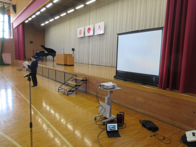 歌練習(3年) 2026年3月12日 最終更新日時 : 2026年3月12日 kumagaya_edit 証書授与のシーンをスクリーンに投影します。音楽の先生の指導により、声が一段と張れるようになりました。