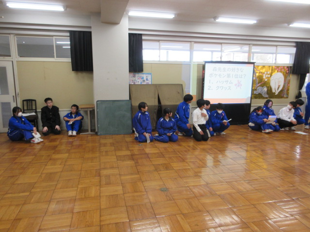 多目的室を使って、出し物の流れ、セリフを確認しています。