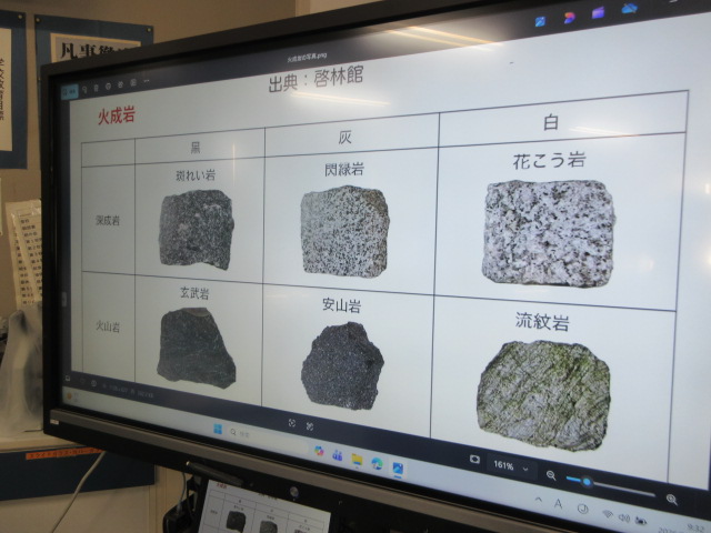 火山岩と深成岩について学んでいます。岩の名前と特徴をしっかり覚えましょう。