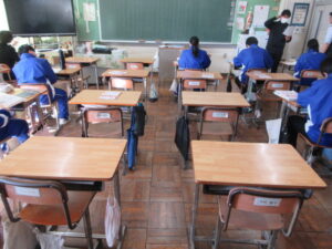 生徒のノートを使って(2年) 2025年1月29日 最終更新日時 : 2025年1月30日 kumagaya_edit 平行四辺形になる条件の学習をしています。生徒のノートをモニタに表示して説明しています。
