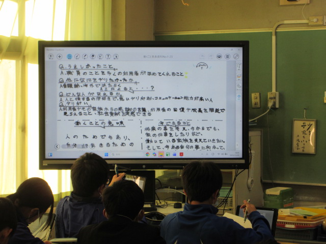 発表会(1年) 2025年12月5日 最終更新日時 : 2025年12月5日 kumagaya_edit 総合的な学習の時間で、働くことについて調べてきました。今日は1人ずつ発表をしています。レポートは全員タブレットで共有しています。