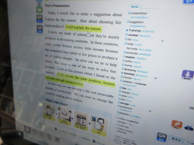 発音の確認(3年) 2025年10月21日 最終更新日時 : 2025年10月21日 kumagaya_edit デジタル教科書を使い、一つ一つの文の発音を確認しています。聞き取りづらい部分を個人に応じて聞き返せるのはとてもよいです。ただ教室内はとても静かです。