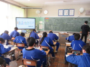 発音の確認(3年) 2025年10月21日 最終更新日時 : 2025年10月23日 kumagaya_edit デジタル教科書を使い、一つ一つの文の発音を確認しています。聞き取りづらい部分を個人に応じて聞き返せるのはとてもよいです。ただ教室内はとても静かです。