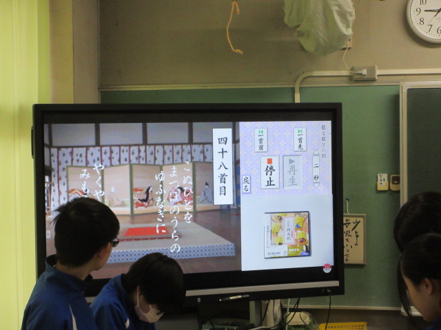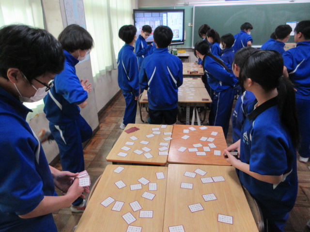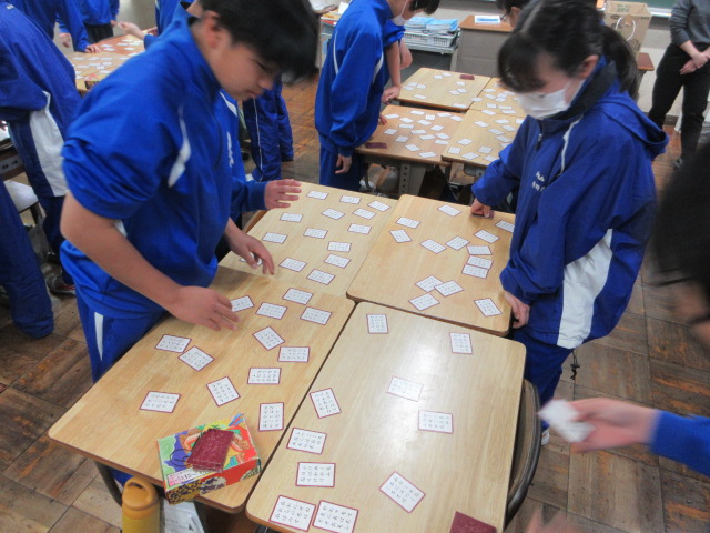 百人一首大会(1年) 2026年3月25日 最終更新日時 : 2026年3月25日 kumagaya_edit 1年生は百人一首の学習が始まったばかりです。覚えている句も少ないため、まだカルタの延長です。1年経つとずいぶん変わります。