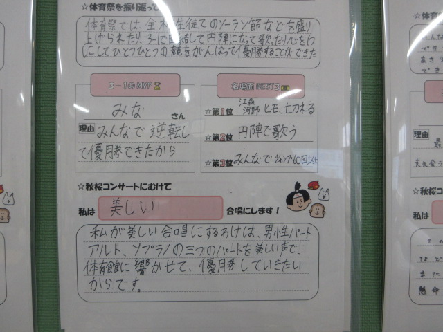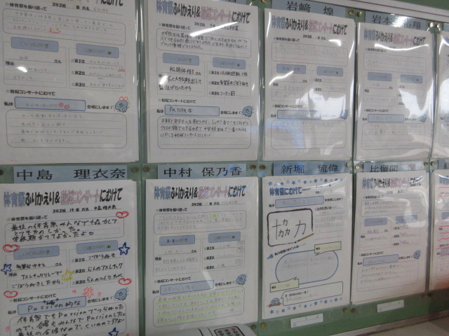 教室には掲示物が。体育祭の振り返りも併せて掲示中です。