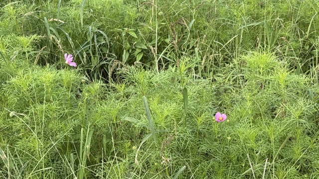 学校前の畑に種がまかれて約一カ月。ちらほらと秋桜が咲き始めました。