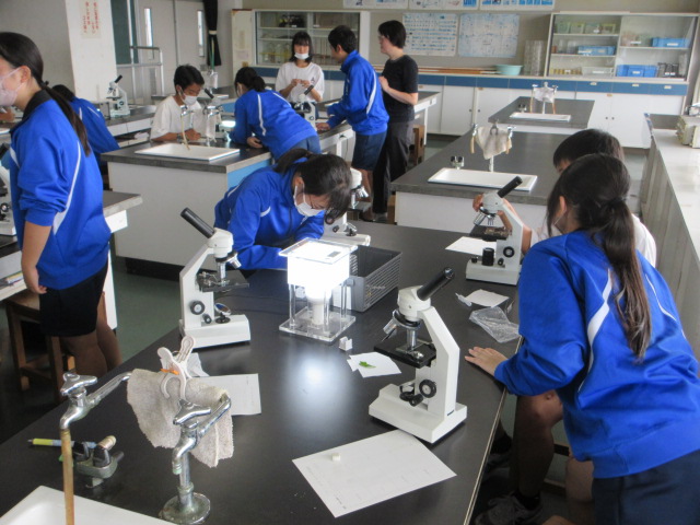 細胞の観察(2年) 2025年10月6日 最終更新日時 : 2025年10月6日 kumagaya_edit 両クラスとも顕微鏡を使ってオオカナダモの葉の細胞を観察しています。葉緑体や気孔がはっきり見えます。