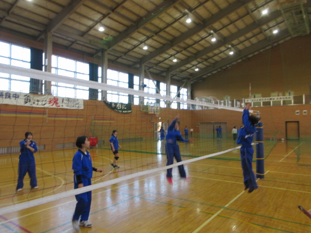 バレー部はスパイク練習、卓球部は終わりの挨拶でした。