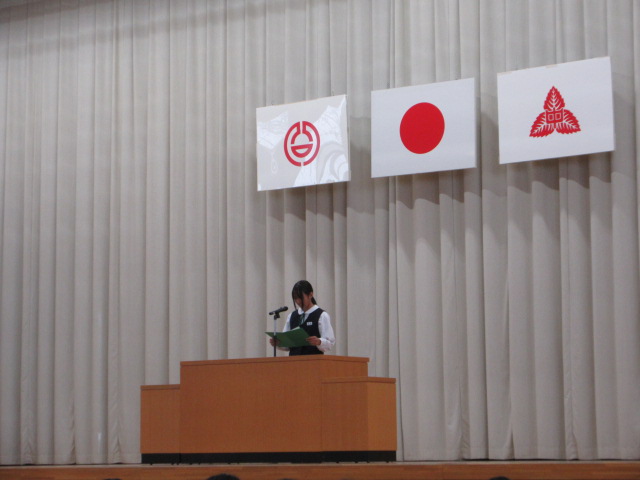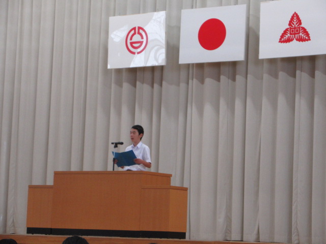 代表生徒2名が前期のまとめを発表しました。前期に頑張ったことを踏まえ、