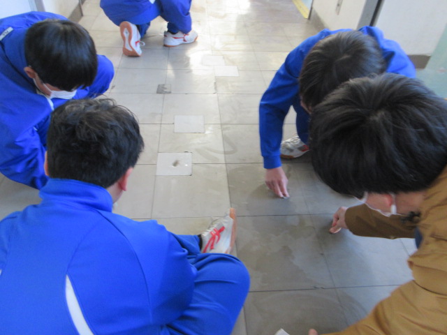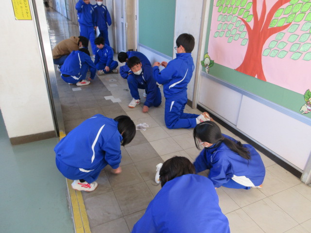 続・磨く生徒 2026年2月3日 最終更新日時 : 2026年2月3日 kumagaya_edit 昨日に続き、磨いています。今日は1年生の教室前廊下です。10人が取り組んでいます。ぞうきんではなく、メラミンスポンジを使っています。