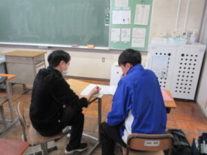 練習問題(3年) 2026年1月9日 最終更新日時 : 2026年1月9日 kumagaya_edit 円周角についての練習問題を解いています。難しい問題もありますが、すらすら解いてしまう生徒もいます。受験勉強の努力が見られます。