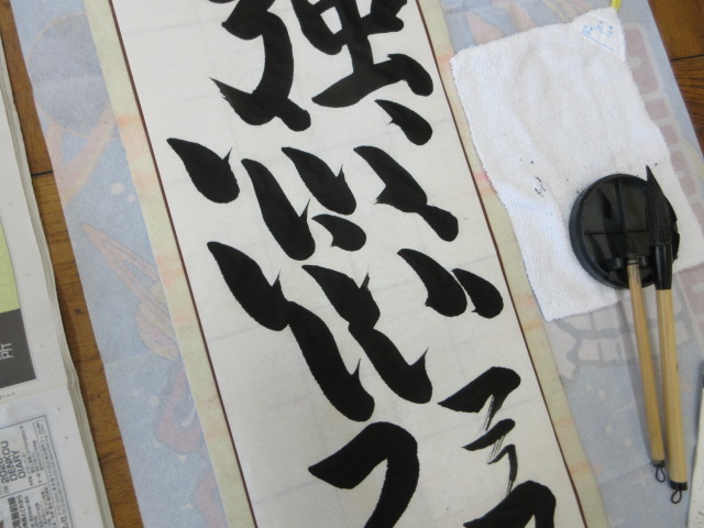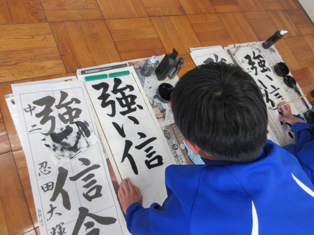 書初めの練習です。納得のいくまで同じ文字を繰り返し書いている生徒もいました。
