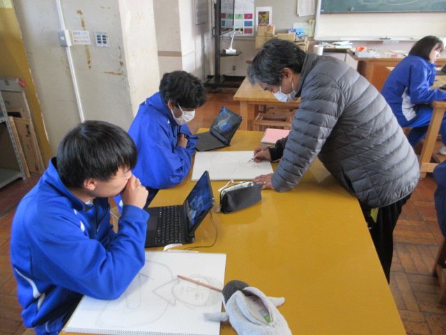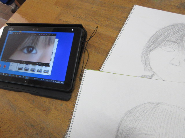 自画像(3年) 2025年12月11日 最終更新日時 : 2025年12月11日 kumagaya_edit 自撮りした写真をパーツごとにアップにして描く発想に感動しました。一人一人自分の特徴をうまく捉えています。