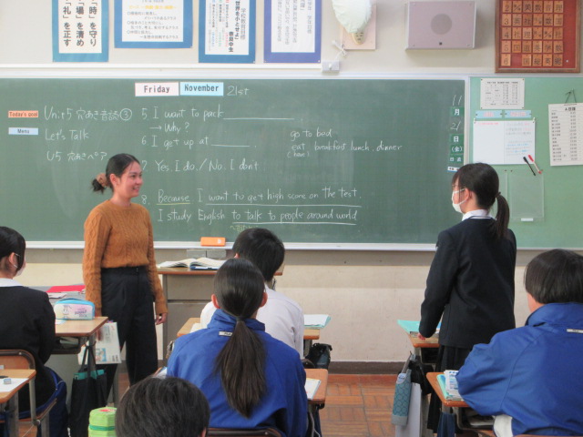英会話(2年) 2025年11月21日 最終更新日時 : 2025年11月21日 kumagaya_edit ALTの先生からの質問に、回答しています。言われていることはわかっても回答の単語が浮かばないと回答できません。頭の中をフル回転です。