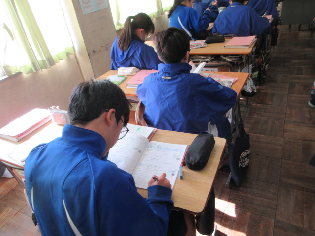 期末テストの勉強も兼ね、授業後半はワークを進めています。