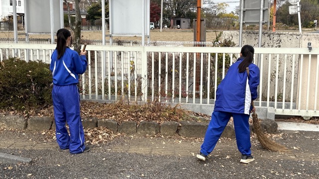 落ち葉はき(3回目) 2025年12月3日 最終更新日時 : 2025年12月3日 kumagaya_edit 1・2年生だけの活動となっていますが、いつも以上にがんばってくれました。清掃を終えた生徒が続々と集まっています。