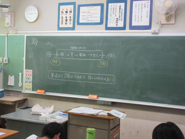 葉のどの部分から水蒸気が放出されているかを考えています。