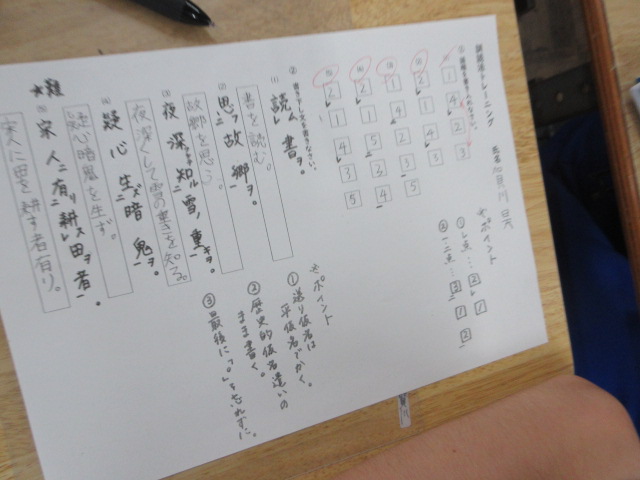 訓読法(1年) 2025年10月14日 最終更新日時 : 2025年10月14日 kumagaya_edit 漢文を日本語の文法に置き換えて読んでいます。レ点、一・二点などを駆使します。全問正解も何人かいました。すごいです。