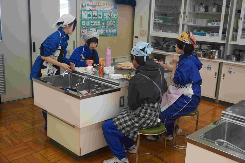 調理実習(3年) 2025年12月17日 最終更新日時 : 2025年12月17日 kumagaya_edit 久しぶりの調理実習です。各グループの計画にのっとり別々のものを調理しています。調理のときも、食事のときも楽しく取り組んでいました。