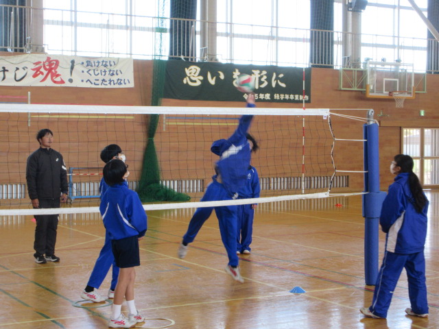 豪快(1年) 2026年3月12日 最終更新日時 : 2026年3月12日 kumagaya_edit 登校再開後の最初の授業が体育でバレーボールです。スパイクの練習をしていますが、タイミングが合わず豪快に空振りしています。