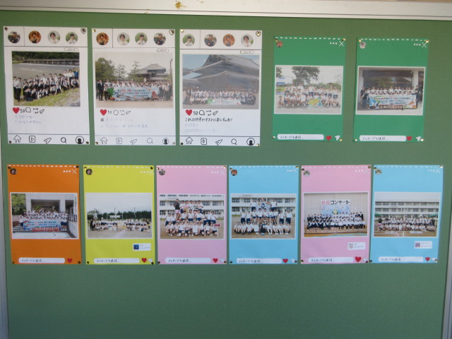 送る会で飾られていた掲示・展示物が3年生の廊下に。