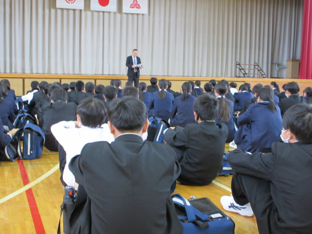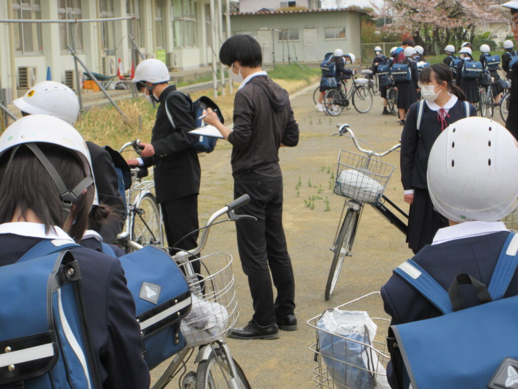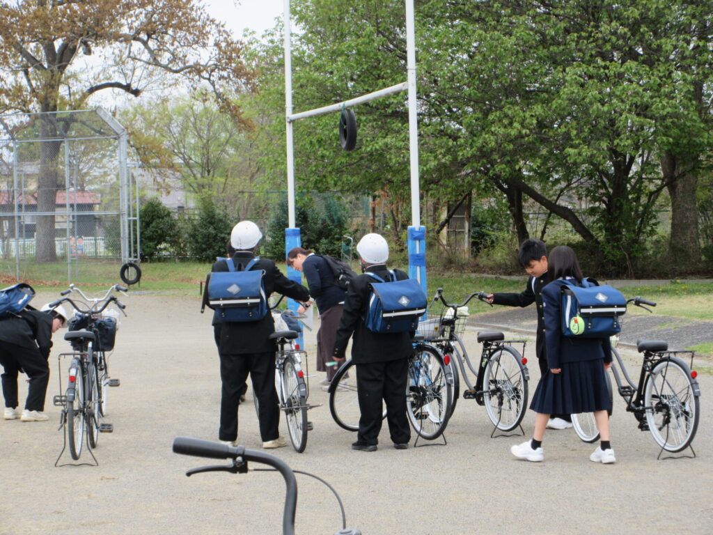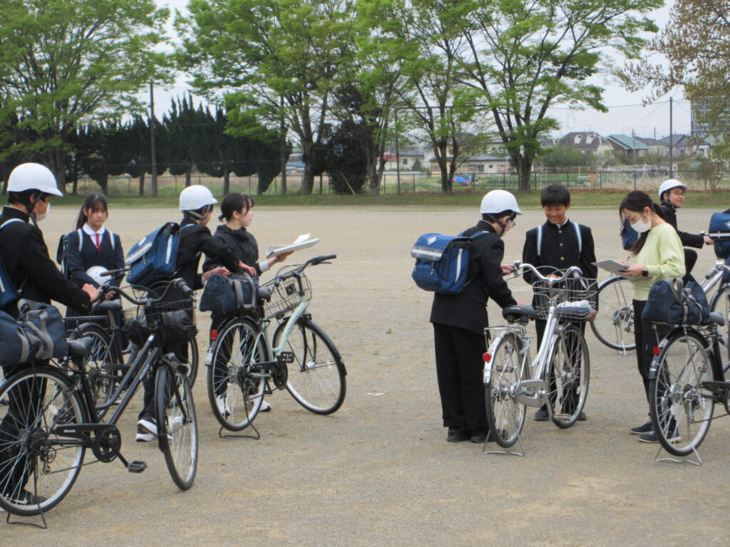 6校時に通学路確認と自転車点検を行いました。通学路確認に先立って、安全主任と校長からそれぞれ安全に関する話があり、「自分の命は自分で守る」「そのためにも、安全に乗るための点検や自転車の乗り方、自転車のルールを守ることが大事」といったことを指導しました。自転車点検でチェックされた項目があった人は、明日には必ず改善しておきましょう。