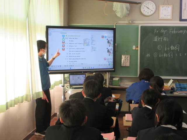進行形(1年) 2026年2月13日 最終更新日時 : 2026年2月13日 kumagaya_edit 現在進行形の学習をしています。「リオスさんは何をしていますか?」「ケーキをデコレーションしています」飾りつけよりもデコレーションの方が多いです。