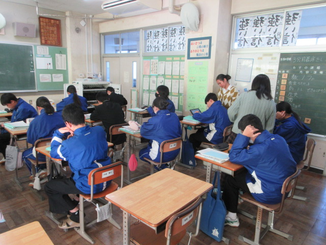 過去形(2年) 2026年1月9日 最終更新日時 : 2026年1月9日 kumagaya_edit デジタル教科書を使って、過去形の確認をしています。eatの過去形で悩んでいる生徒に、「えーとなんだっけ」とアドバイスしました。
