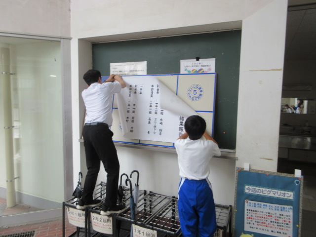 昼休みに昨日の選挙結果の発表がありました。