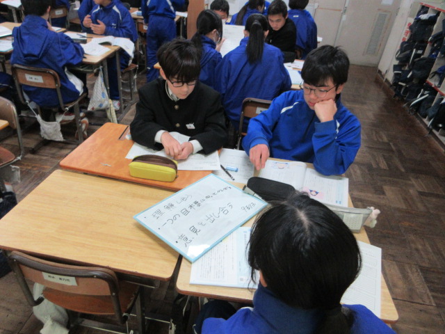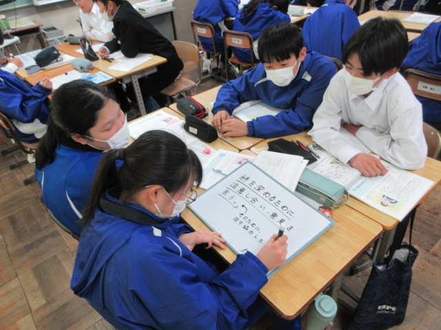 金賞を目指して(1年) 2026年1月29日 最終更新日時 : 2026年1月29日 kumagaya_edit 集団生活の充実をテーマとした道徳教材を扱っています。グループでの話し合いでよい意見がたくさん出ています。