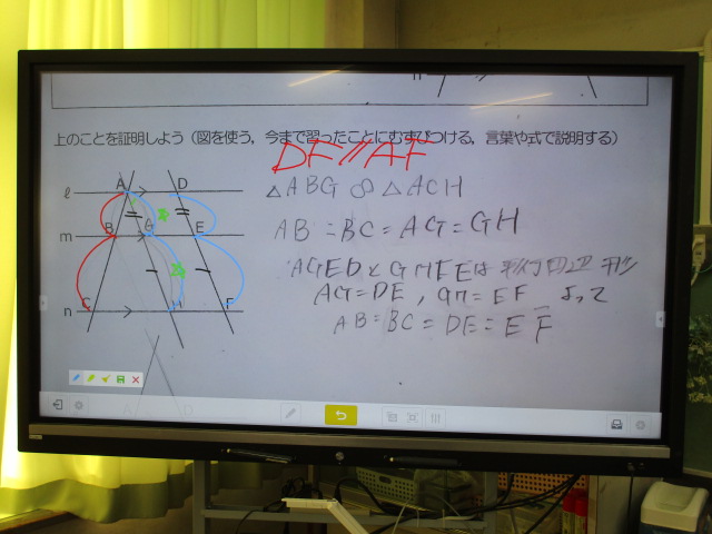 長さを求める(3年) 2025年11月18日 最終更新日時 : 2025年11月18日 kumagaya_edit 平行線の比を使って長さを求めています。結果だけでなく、なぜその方法で求められるのかを知ることも大切です。