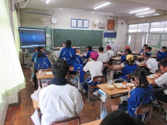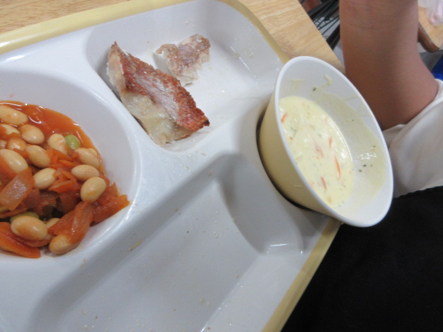 今日の給食の魚ですが、若干骨が気になります。生徒に気を付けるよう放送を流しました。