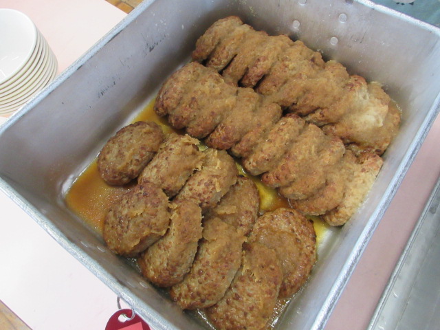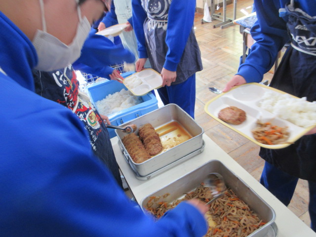 今日の給食はハンバーグ。急遽1クラス分余ってしまったため、