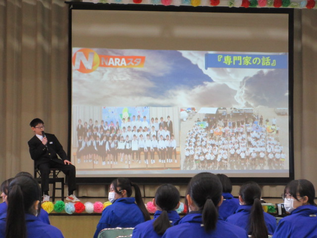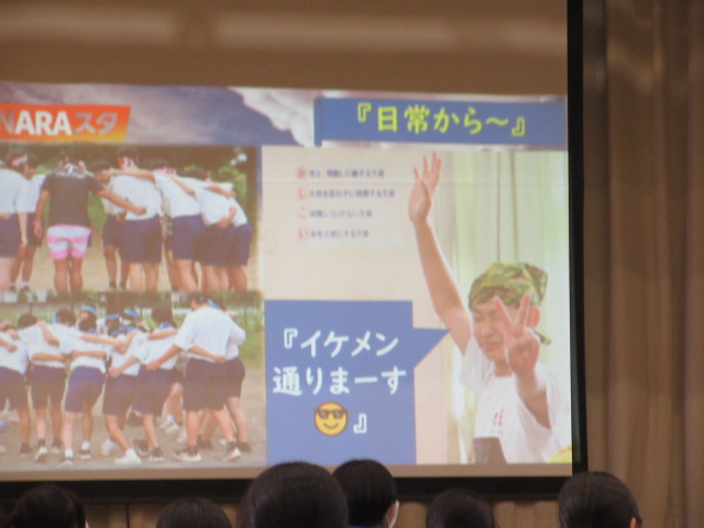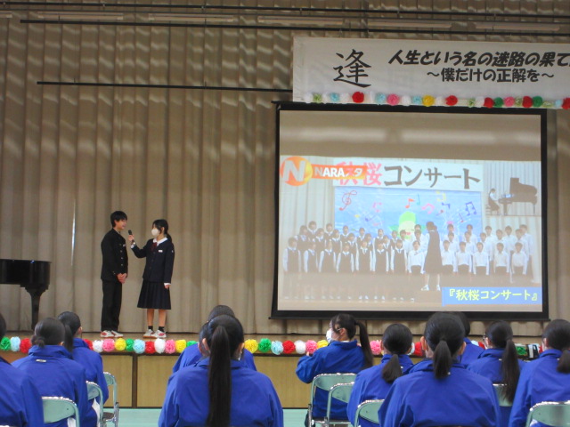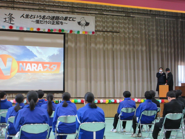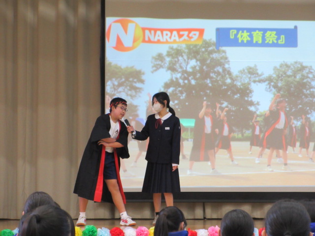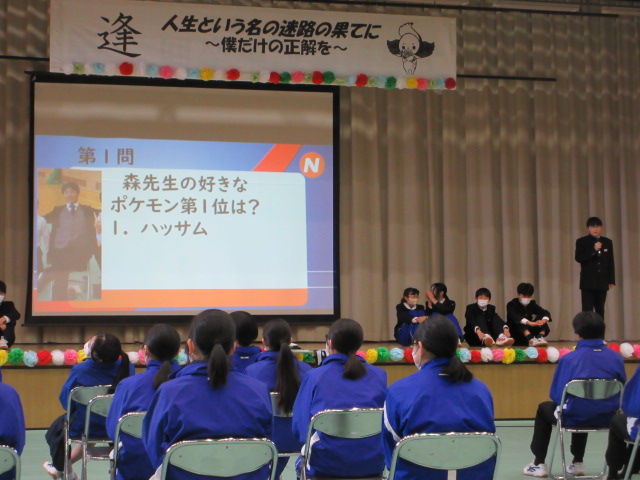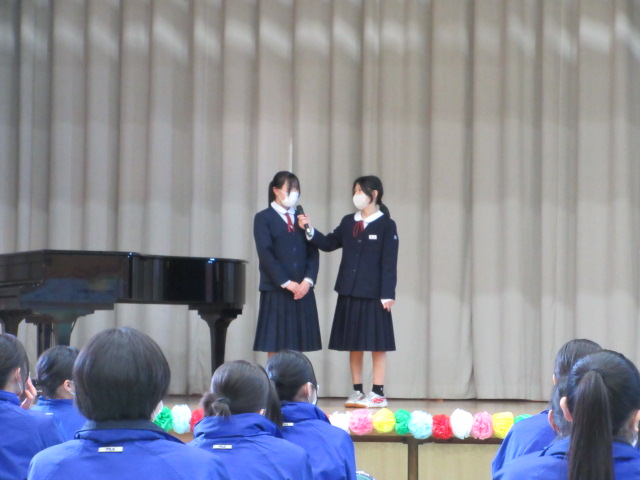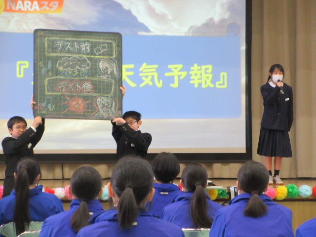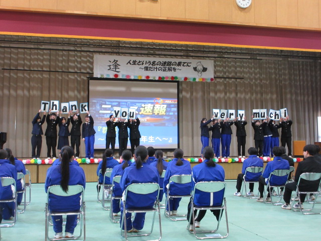 1年生はニュース番組形式で3年生への感謝を伝えました。