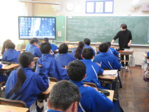 買い物をするときの様々な表現について確認しています。難しいかと思いましたが、生徒は簡単に解答していました。学んだことが身についています。