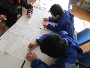 徒然草の冒頭部分の暗唱テストをしています。暗記できています。