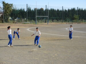 新人戦が終わると、来週はいよいよ体育祭です。現在校庭では保体科の2人が予行に向けた会場づくりを行っています。