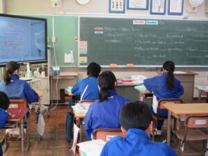 授業前に英語でじゃんけんのアクティビティを行いました。その後は教科書の英文の読み方を確認しています。