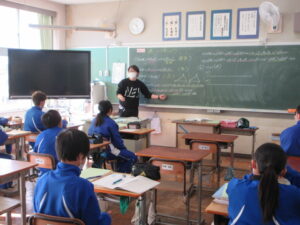 これまでに習得した英語の表現を駆使して、オンラインで繋がったALTと会話をしています。表現が難しい場合は、何度も言い直しながら伝える工夫が見られます。さすが3年生です。