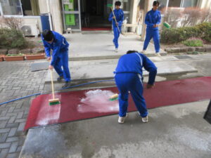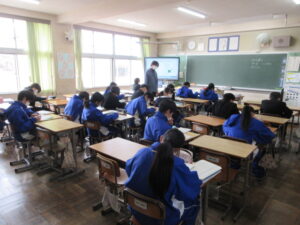 木製のペンケースをやすりでひたすら磨いています。磨きこんだ生徒の作品はすべすべで滑らかな仕上がりとなっています。