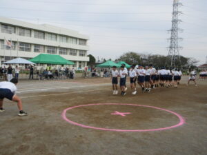 多くの来賓、保護者の方にお越しいただきました。天気もちょうどよい秋晴れに恵まれ体育祭が開会しました。力強い選手宣誓でした。