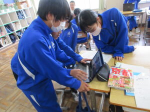 今日もたくさんの生徒でにぎわっていました。借りていく人より読んでいく人の方が多いとのことです。来年もたくさん利用してください。