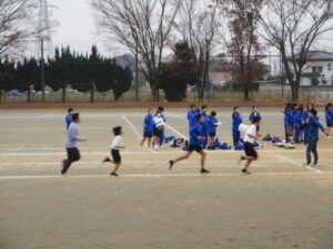 とても寒い日となっています。校庭では、長距離走の授業が続いています。先生も一緒に走ります。走ったあとは体もぽかぽかです。