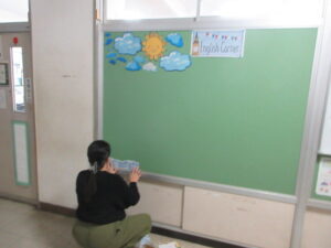 ALTの先生が掲示物を冬バージョンに作り替えてくれています。出来上がるのが楽しみです。