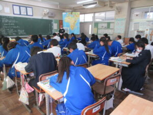 竹取物語の一部を書き写しています。字を丁寧に書く練習です。終わった人は入試問題にチャレンジしています。