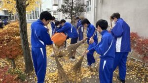 1・2年生だけの活動となっていますが、いつも以上にがんばってくれました。清掃を終えた生徒が続々と集まっています。