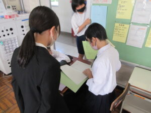 東北地方についての資料や写真からわかることをグループでまとめています。資料を読み取る力は最近特に重要視されていて、様々な教科に位置付けられています。